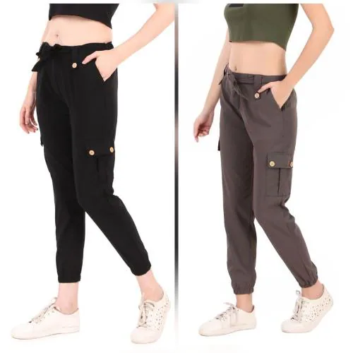 Classy looks Cargo Joggers for Women pack of 2 | Multicolor | Size 34