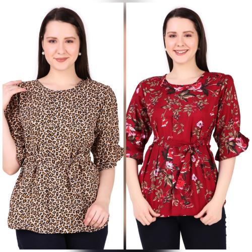 Classy Looks Women's Crepe Printed Tops pack of 2