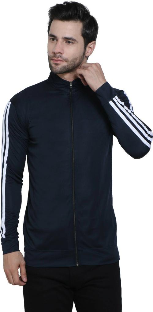 Cloflix Men Navy Striped Polyester Sports Jacket (Xxl)