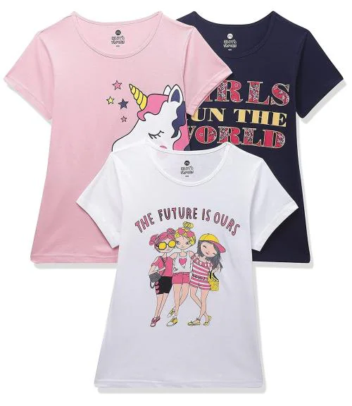 CLOTTH THEORY Girls Multicolor5 100% Cotton Printed Pack of 3 T-shirt