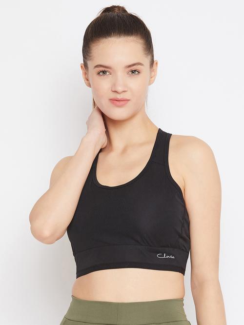 Clovia Black Solid Polyester Single Sports Bra