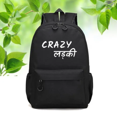 CLUCI Crazy Ladki Printed Backpack, School/ Office/Travel Bag (Black)