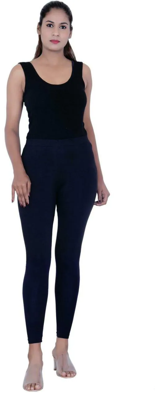 CO COLORS Women Dark Blue Solid Cotton Lycra Blend Legging - XXL