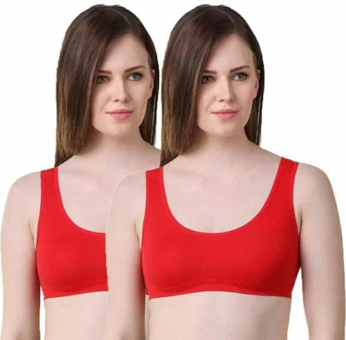 Comfystyle Women Red Cotton Blend Pack Of 2 Sports Non Padded Bra