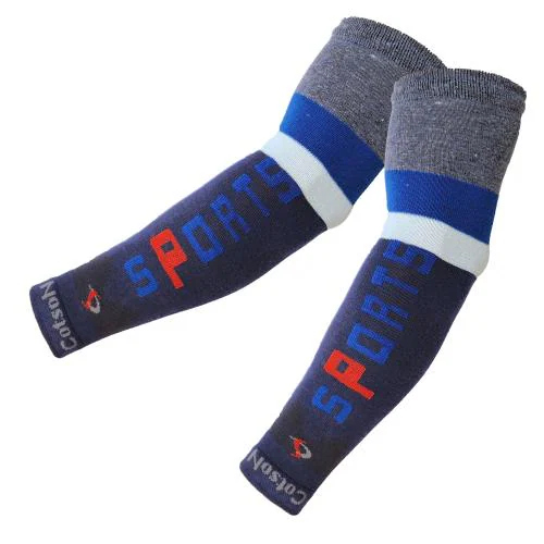 Cotson Cotton Sunburn Sunlight Protection Driving Full Hand Arm Gloves (Navy Blue) - 1 Pair