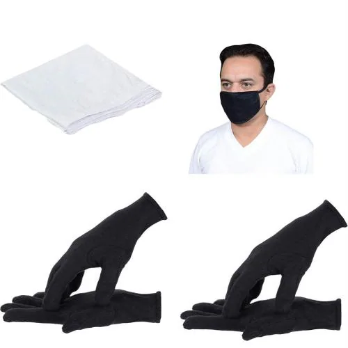 Cotson Men Cotton Hand Gloves And Mask Combo For Bike Riders Pack OF 2 Pair (Black, Free size)