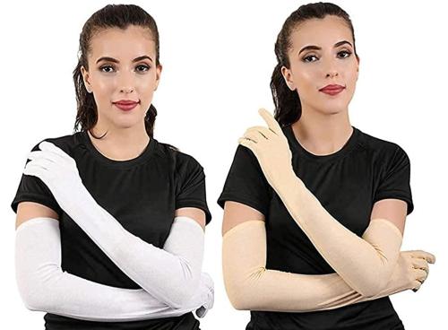 Cotson Women Cotton Driving Gloves For Scooty, Cycling Sun And UV Protection (Beige, White) -2 Pairs