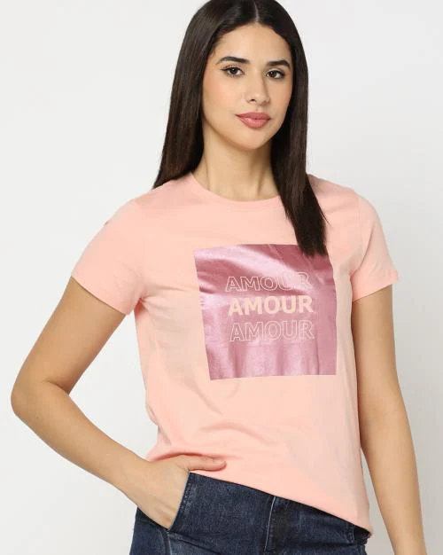 Typographic Print Round-Neck T-Shirt