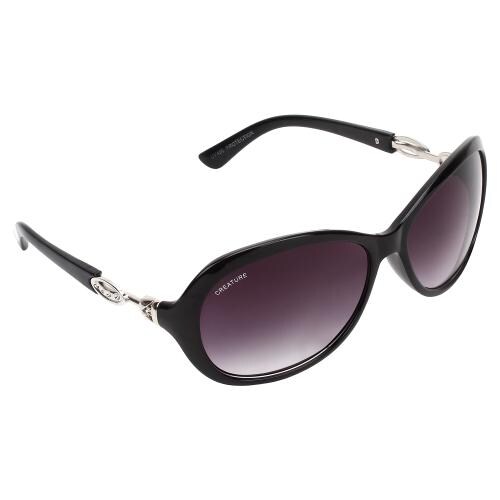CREATURE Gaga Cat-Eye Oversize Sunglasses For Girls(Lens-Purple||Frame-Black||GAGA-007)