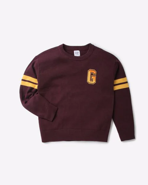 Crew-Neck Pullover with Placement Logo Knit