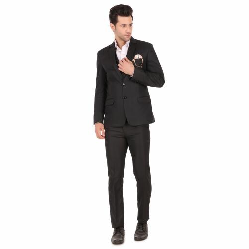 Crocks Club Men Black Solid Cotton Blend Suit Set (36)