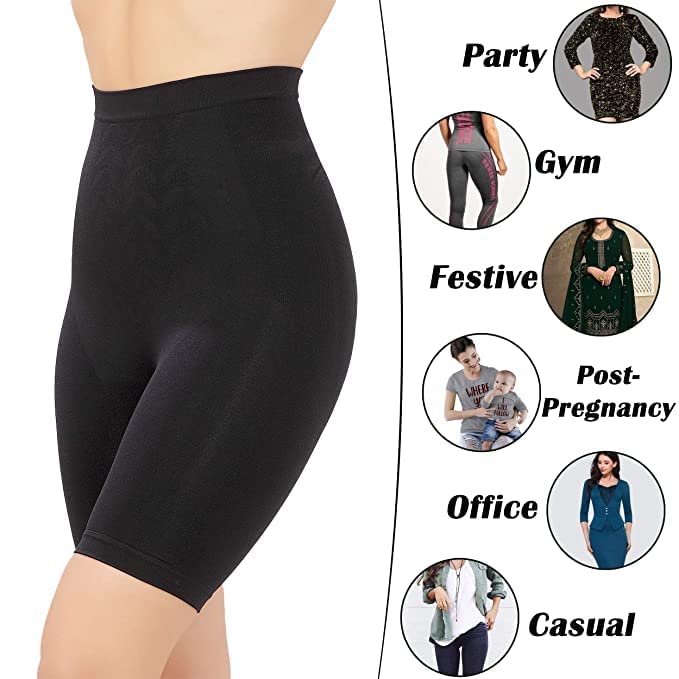 D&E JEANS Women's Tummy Tucker High Waist High Rise Shorts with Elasticated Waist Shapewear with Anti Rolling Strip Panties Seamless Underwear Women Waist Shapewear Body Shaper for Gym Yoga Exercise Dance Boys Shorts (PACK OF 2)