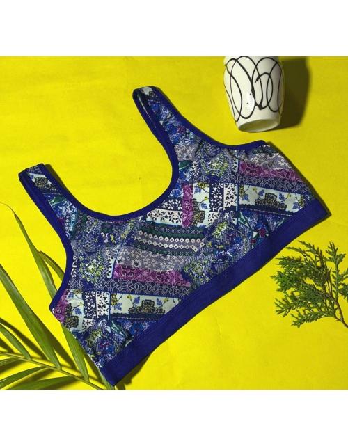 D Life Dream Life Drak Blue Color Lycra Fabric Padded Full Covreage Floral Print Women Sports Bra