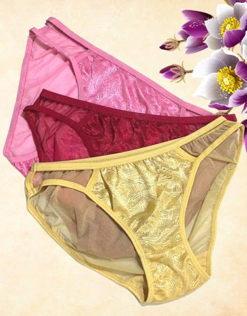 D Life Dream Life Women Beige & Pink & Maroon Power net fabrice panty pack of 3
