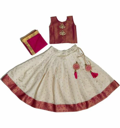 D9Kids Baby Girls Beige Embellished Cotton Lehenga, Choli and Dupatta Set