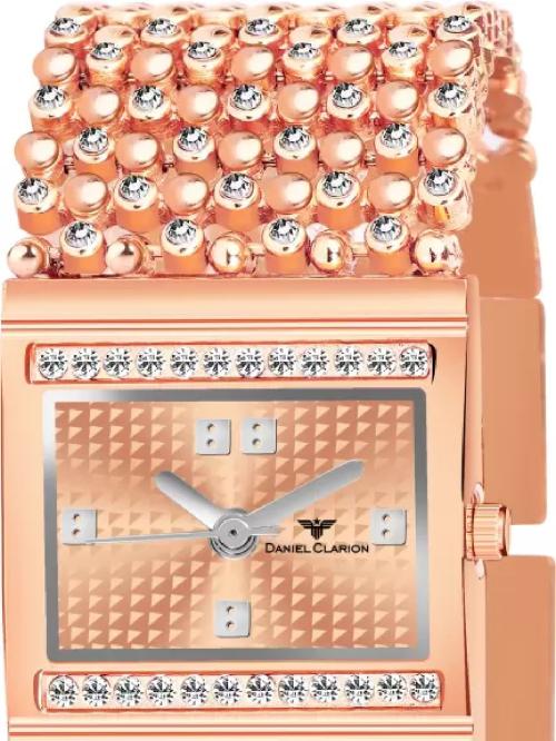 DANIEL CLARION DC-0012-ROSE GOLD Stylish Rectangular Rose Gold women watch with diamond studded case and chain Analog Watch - For Girls