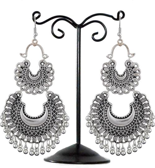 Darsha Collections Black Silver Plated German Silver Silver Chandbali Earring (Girls And Women)
