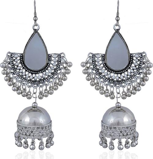 Darsha Collections Black Silver Plated German Silver Silver Drops And Danglers (Girls And Women)