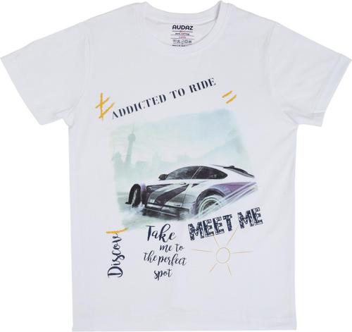 De Moza Boys White Printed Cotton Blend T Shirt (2-3 Years)