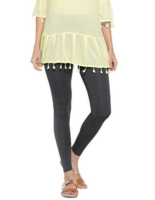 De Moza Women Dark Grey Solid Viscose Leggings - S