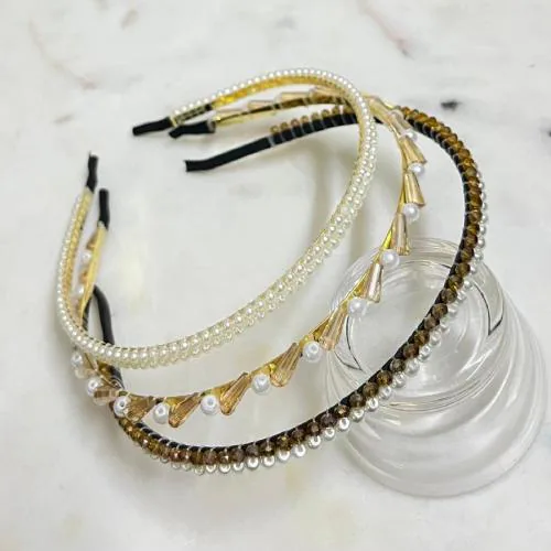 DEEPTI CHANDNA DESIGNS Gold Cone Hair Accessories Crystal Beaded Plastic Fancy Party Wedding Hairband For Girls