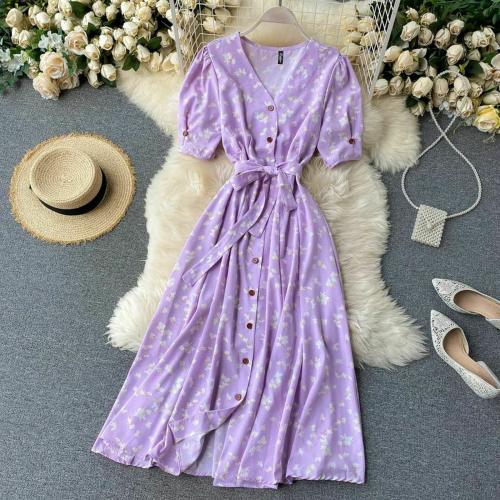 Derifa Women Purple Floral Rayon Fit and Flare Dress