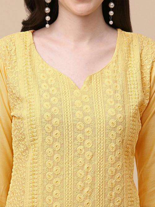 Derifa Women Yellow Floral Embroidered Sequinned Kurta with Palazzos