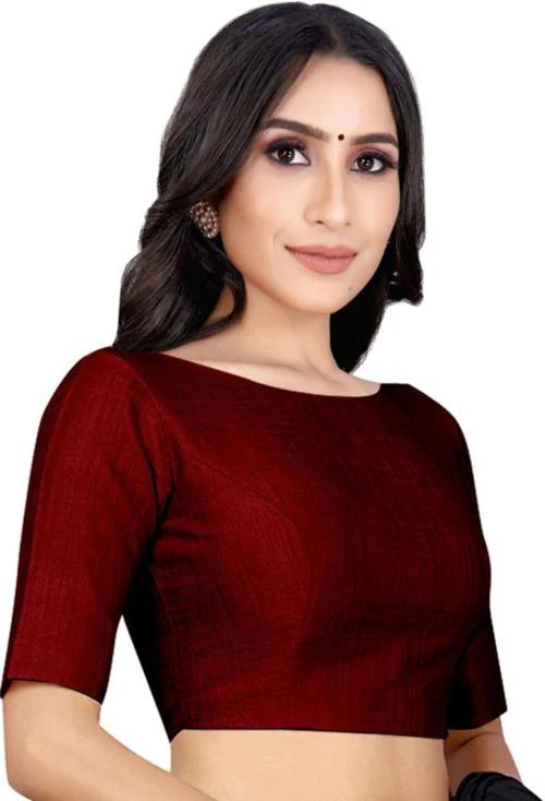 Desimisskart Women Maroon Solid Satin Blend Boat Neck Blouse (38)