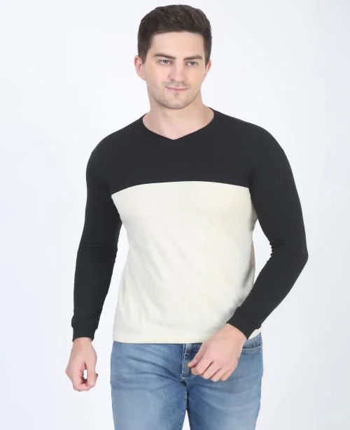 DIAZ Color Block Men V Neck T-Shirt Cream XL