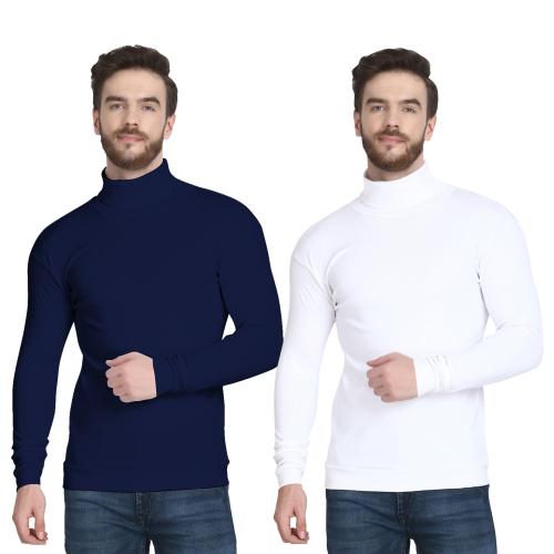 DIAZ Full Sleeve Solid Men Sweatshirt (Pack of 2) Navy,White
