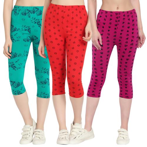 DIAZ Women Printed Pure Cotton Capri | Women's Cotton Capri for Women, Three Fourth for Women Capris Combo of 3, 3/4th Pajama, Womens Night Wear (Pack of 3)
