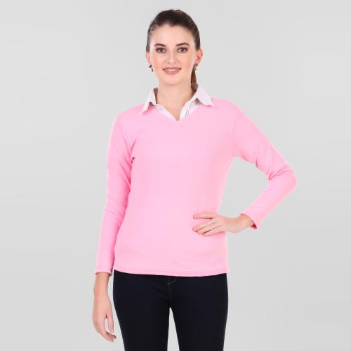 DIAZ Women's Cotton Rib Lycra Regular Pullover Sweater | V-Neck Full Sleeve Sweatshirt for Women Size XL Colour Baby