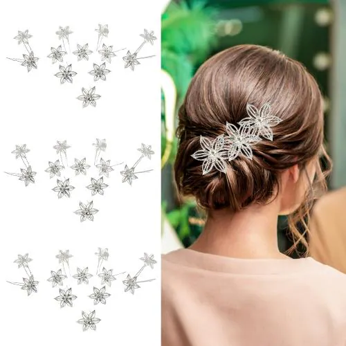 Diversa Bridal Flower Hair Pins Bun Clips For Juda Hairstyle Accessories Golden Metal Barrettes for Women and Girls Wedding Juda Pins (Silver, Pack of 12 Pins)
