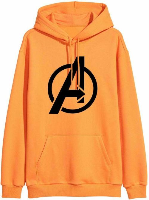 DIVRA CLOTHING Men Orange Graphic Fleece Hoodie (XL)