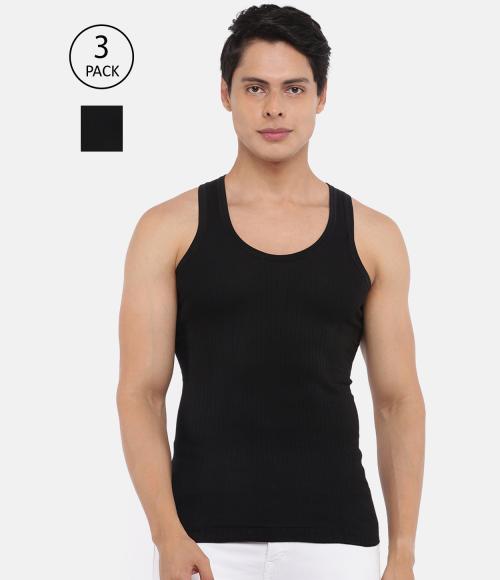 Dollar Bigboss Men's Black Pack of 3 Solid Hutch RN Vest