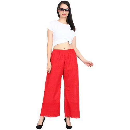DONSON PRESENT Women Free size RAYON Lucknow Chikankari work Palazzo(RED)
