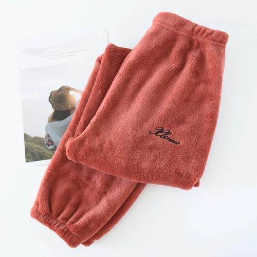 - Winter pajama for women warm pyjamas wool velvet pajama fleece printed nightwear lounge pants winter woolen pajama plus size warm winter lower for women Woolen Soft Fleece Fur sleeping comfortable waistband woolen trackpant Pyjama