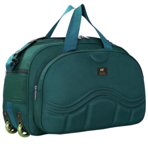 - Outer Material: Nylon, Color: GREEN;Dimensions: 56 cms x 28 cms x 33 cms (LxWxH) Number of compartments: 5 - ( 1 main compartment ,2 front, 2 side);Smooth rolling wheels for travel comfort Laptop Compatibility: No; Long lasting Nylon fabric for extra