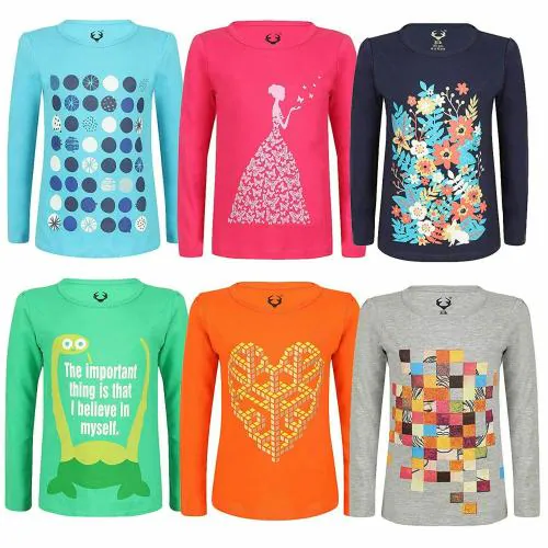 e1k Girls Multicolor Cotton Tshirt 5-6 Y_Pack of 6