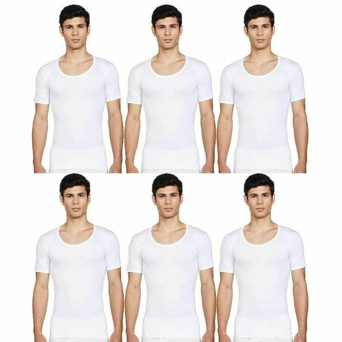 e1k Mens Cotton Half Sleev Vests Pack of 6_White_L_90 Cm