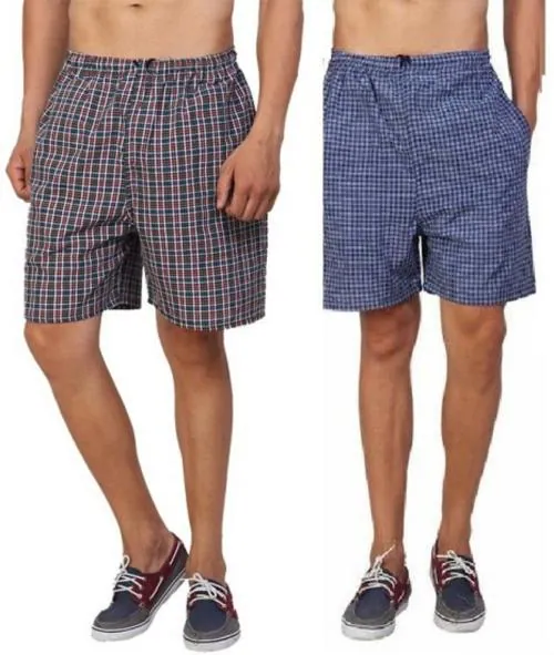 Ecozias Men's Cotton Checkered Printed Boxers, Shorts Multi Color, pack of 2(Meduim)
