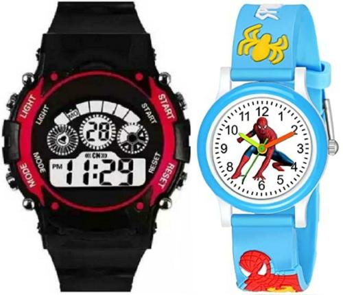 EDENSCOPE Analog Digital Red, White Dial Black, Blue Strap Watch For Boys And Girls (RY/426)