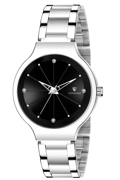 Edinaro Round Dial Stainless Steel Bracelet Chain Analogue Wrist Watch for Women and Girls -(ED-2054W)