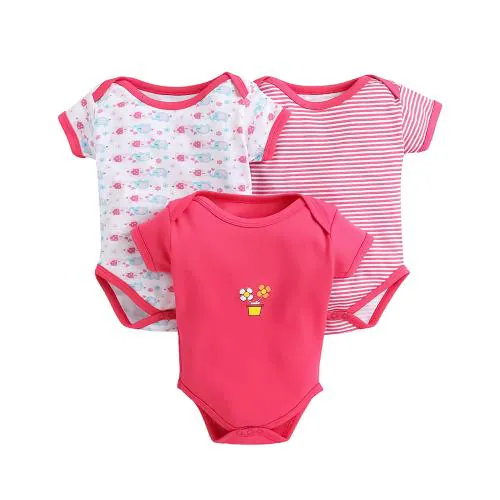 EIO New Born Baby Romper Body Suits Jump Suit for Boys and Girls Set of 3 Dark Pink (6-9 Months)