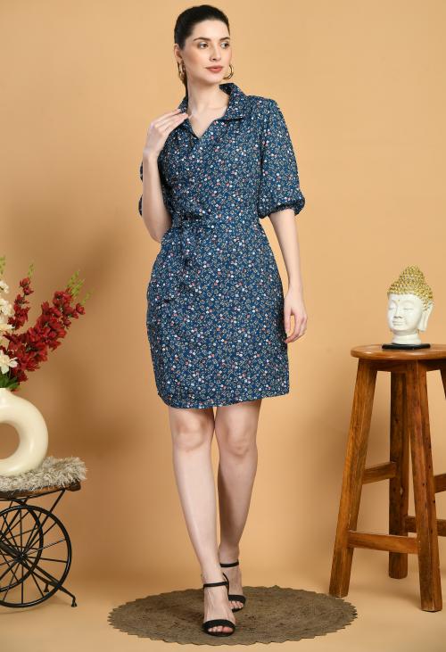 Elanmate Women A-Line Dress Peacock blue Color Dress