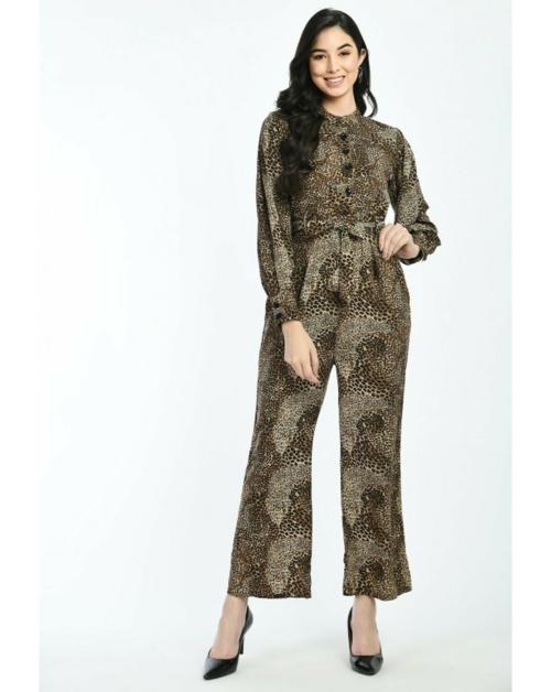 Elanmate Women Black Animal Print Poly Crepe Jumpsuit