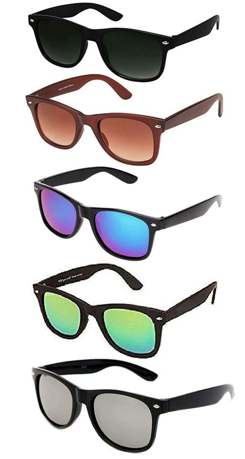 ELEGANTE Mirrored Lenses Square Multicolor Sunglasses For Men (Pack Of 5)