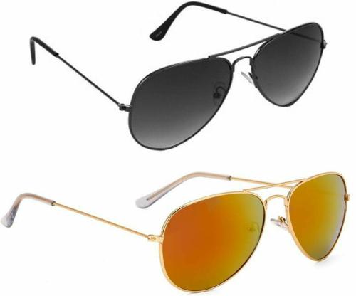 Elgator UV Protection Aviator Black And Yellow Sunglasses For Men And Women (Pack Of 2)