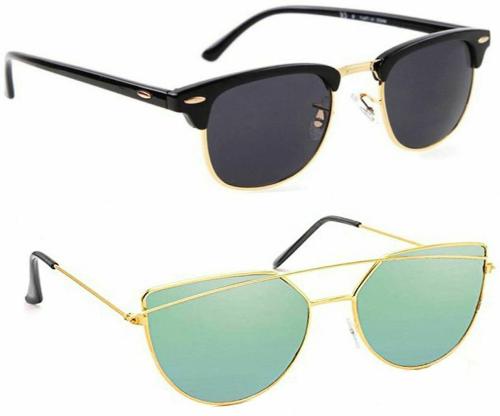 Elgator UV Protection Black And Green Sunglasses For Men And Women (Pack Of 2)