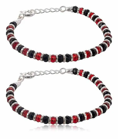 ELOISH Red & Black 92.5 Sterling Silver Bracelet for Children (REDBLACKBABYBRACELET, Set of 2)